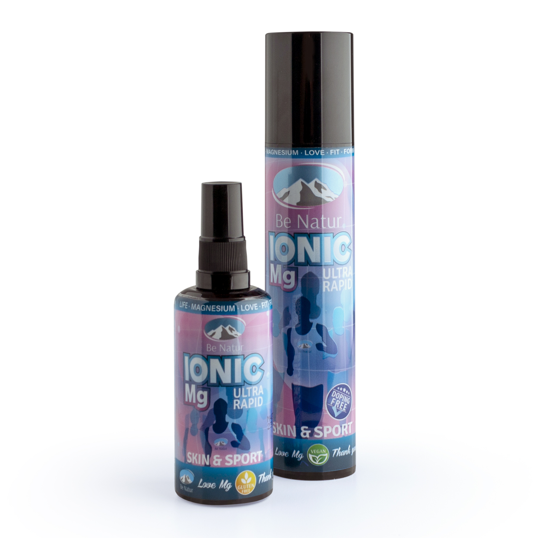 Ionic Mg SKIN&SPORT proizvodi se dobijaju inovativnom metodom strukturiranja rastvora, kojom se magnezijum-hlorid heksahidrat farmaceutske čistoće prevodi u jonizovani rastvor magnezijuma i hlora koji blagotvorno deluje na vašu kožu. U moru opcija, Be Natur Ionic Mg Ultra Rapid se izdvaja kao vaš najbolji izbor. Naša formula, visoke farmaceutske čistoće i dizajnirana za brzu i visoku efikasnost, omogućava da magnezijum nanesete direktno tamo gde je najpotrebniji — vašem telu. Nežan i siguran, naš sprej je vaš novi dnevni ritual za zdravlje koje osećate iznutra i vidite spolja.